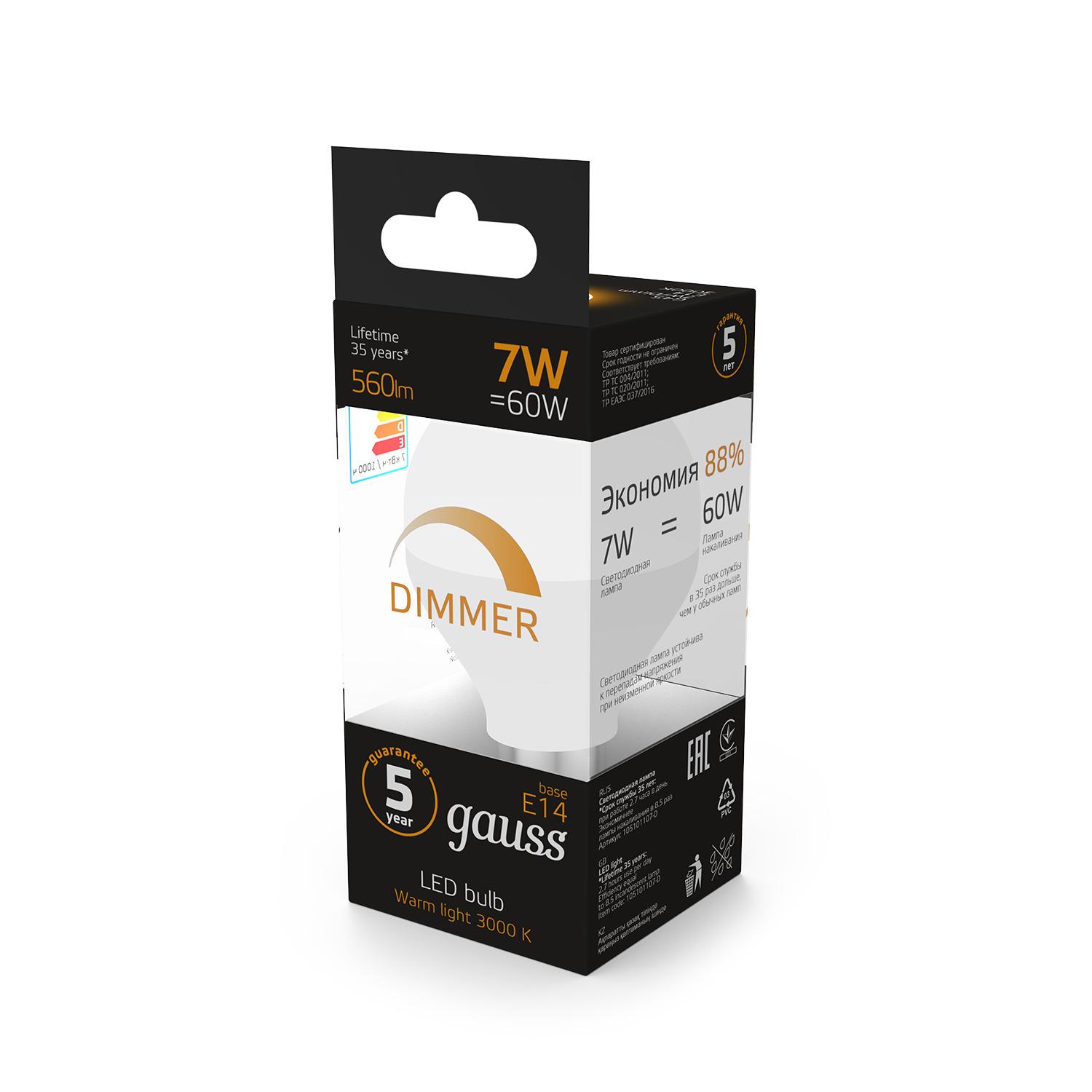 Цена товара "Светодиодная лампа Gauss Шарик 105101107-D" - 695 Р. Покажите, где можно купить конкретный товар дешевле и мы сделаем вам еще более выгодное предложение. А еще вы можете получить скидку 10% на первый заказ, если подпишетесь на наши новости по ссылке.