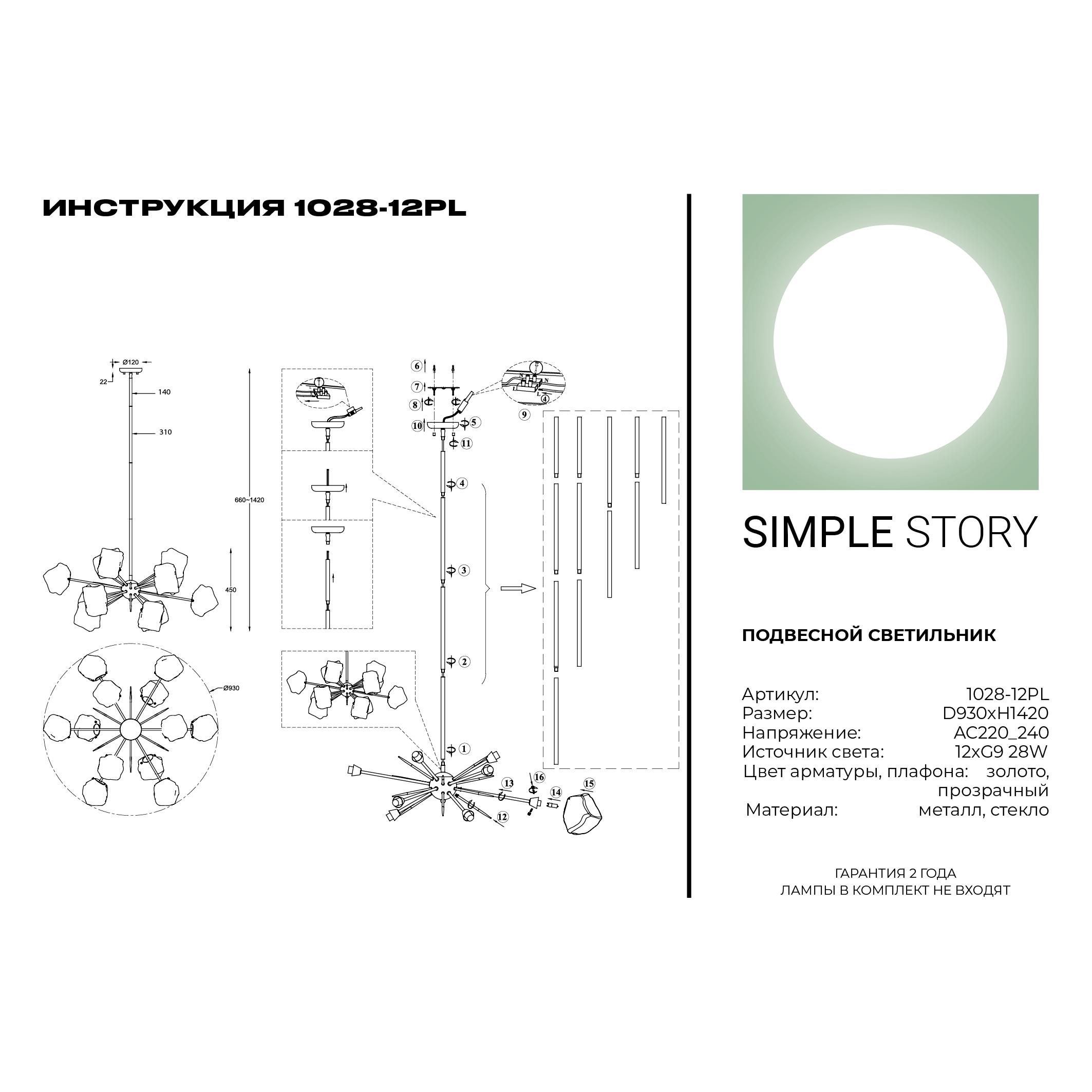 Люстра на штанге Simple Story 1028 1028-12PL