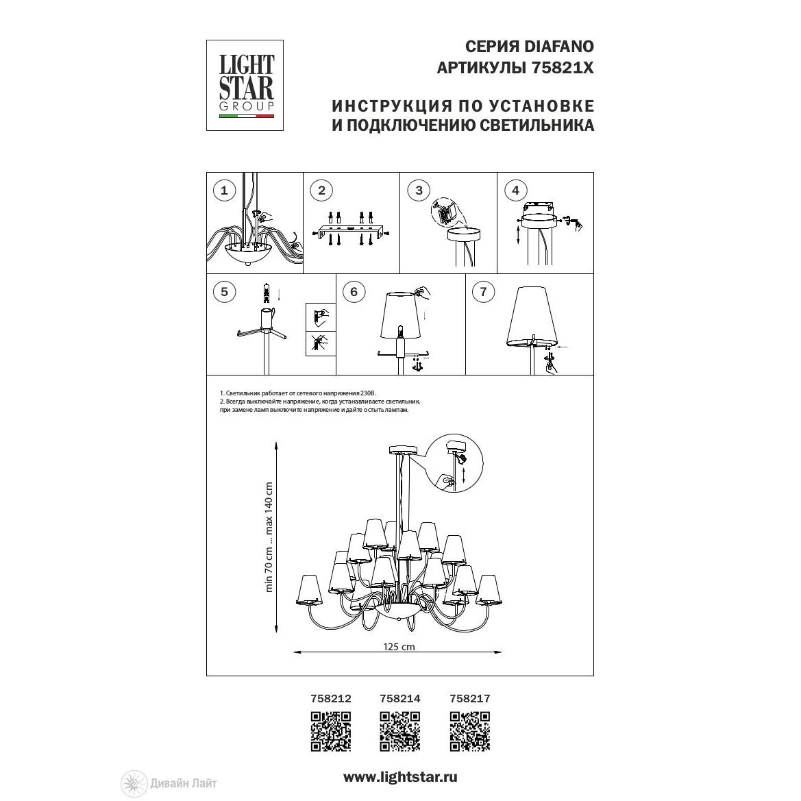 Подвесная люстра Lightstar DIAFANO 758214