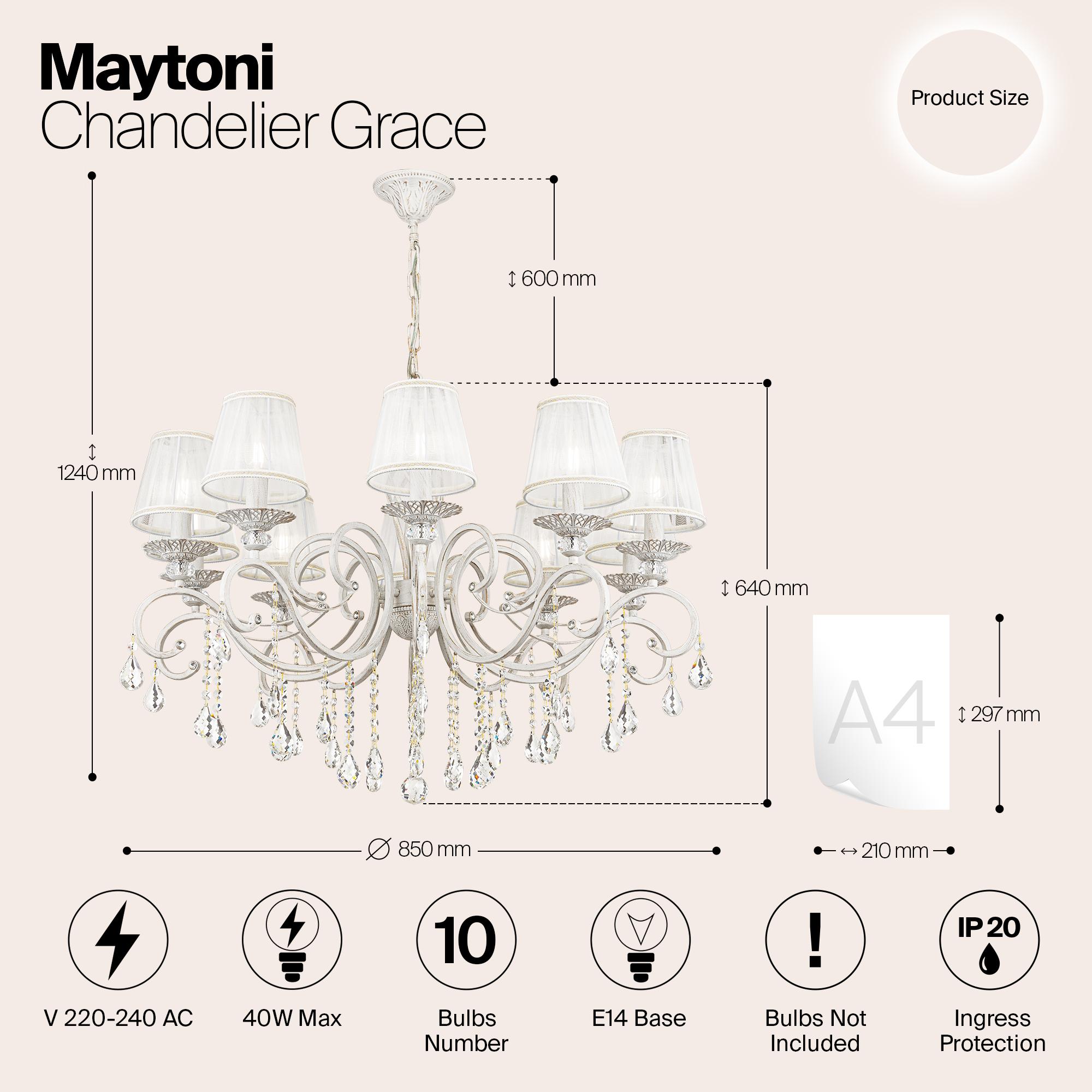 Цена товара "Подвесная люстра Maytoni Grace ARM247-10-G" - 54 990 Р. Покажите, где можно купить конкретный товар дешевле и мы сделаем вам еще более выгодное предложение. А еще вы можете получить скидку 10% на первый заказ, если подпишетесь на наши новости по ссылке.