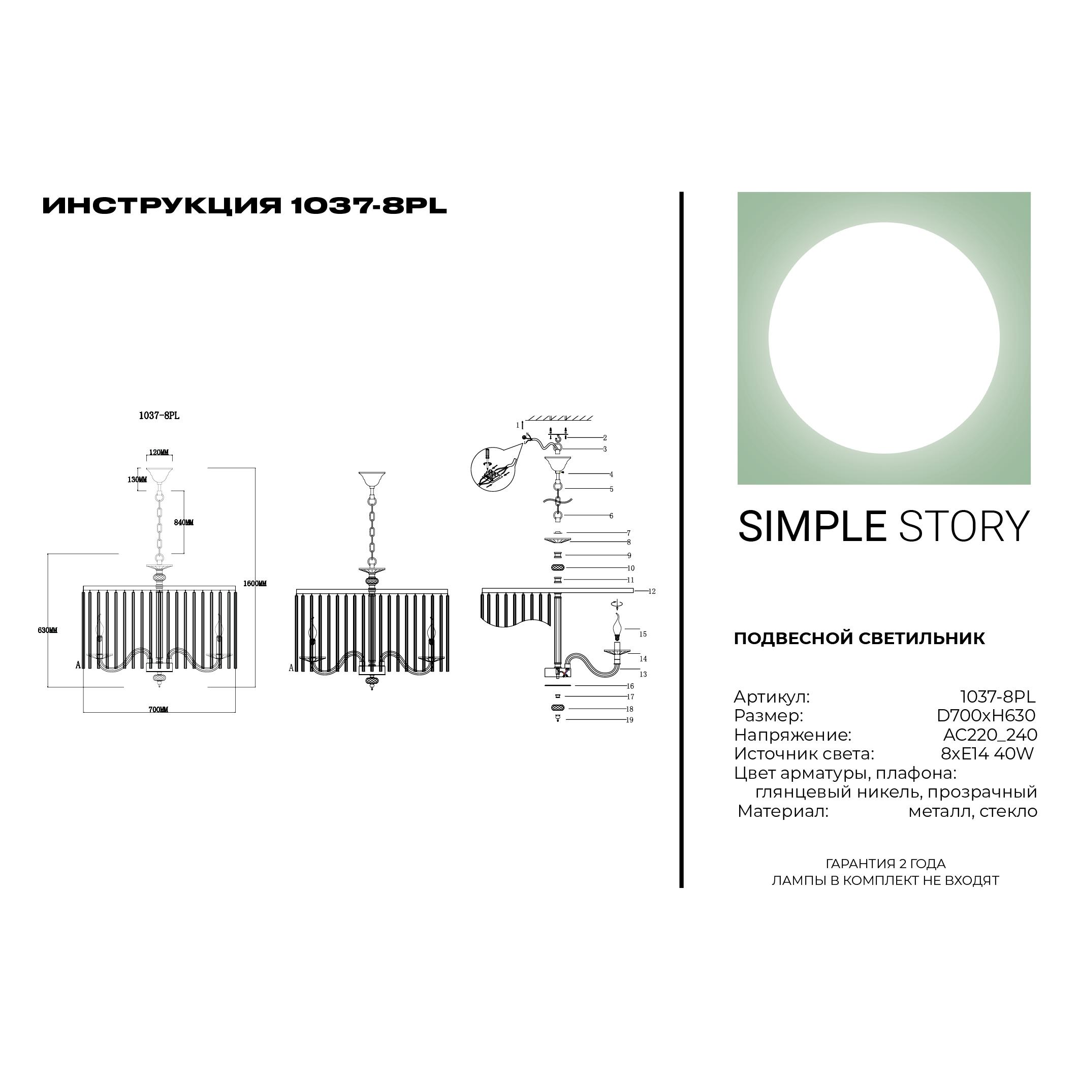 Подвесная люстра Simple Story 1037 1037-8PL