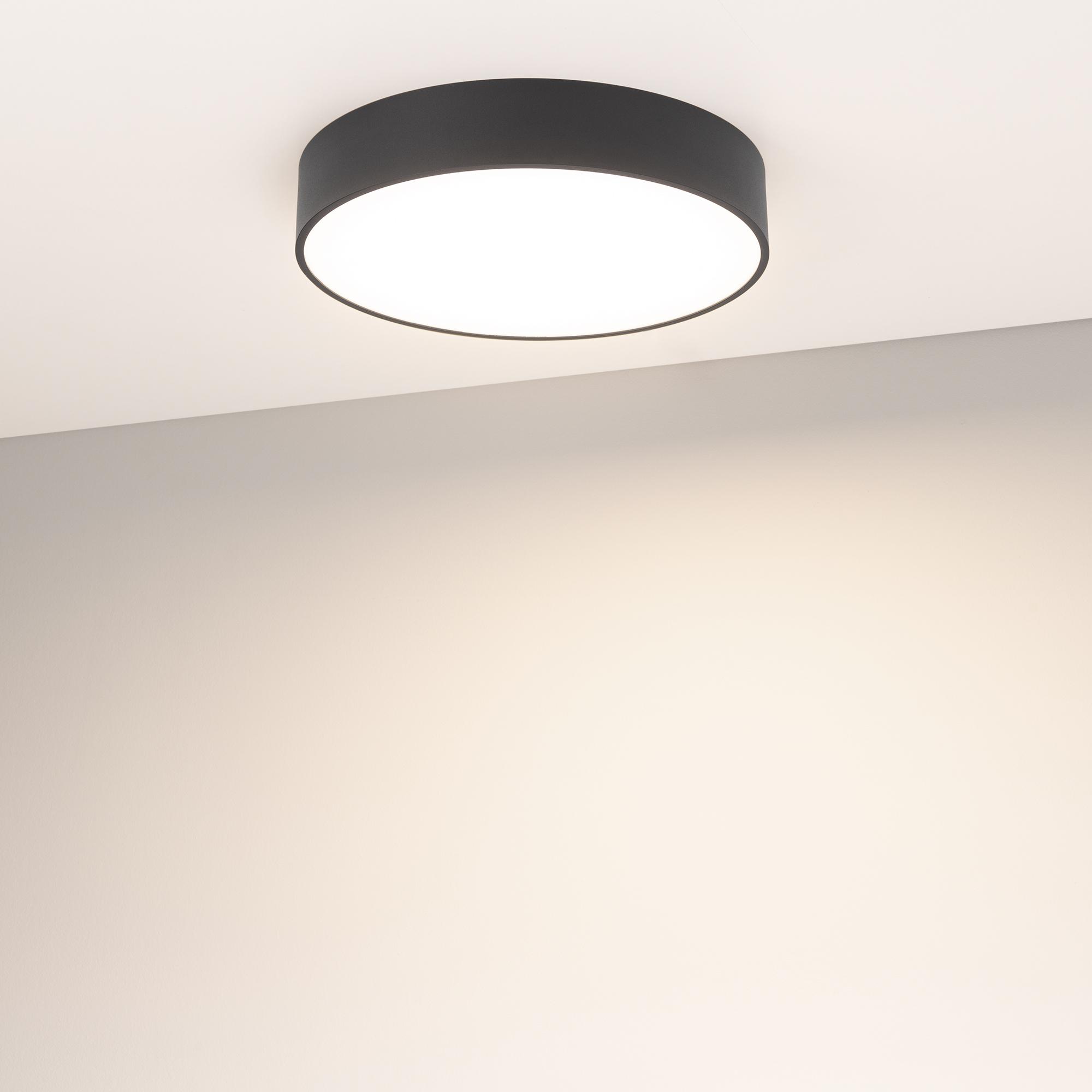 Светодиодный светильник с блоком аварийного питания. Мощность полная 33 Вт, мощность в режиме заряда и контроля АКБ 2.5 Вт, св. поток 2850 лм, 90-100 лм/Вт, световой поток в аварийном режиме не менее 225 лм, дневной 4000 K, CRI>90, угол 120°, напряжение питания 230 В. Черный круглый корпус из алюминия, экран PC, степень защиты IP40. Размер: диаметр 350 мм, высота 64 мм. Монтаж накладной. Драйвер 27-42 В, 800 мА, пульсация <5%. Тип батареи: Li-ion, напряжение батареи 3.7 В, емкость батареи 2600 мА/ч, время работы в автономном режиме: до 3 ч.