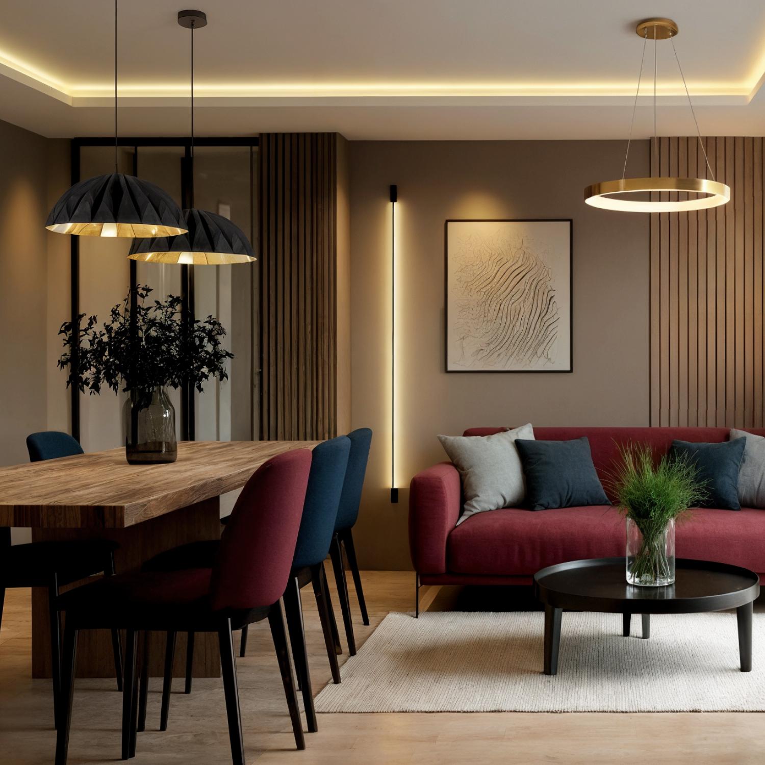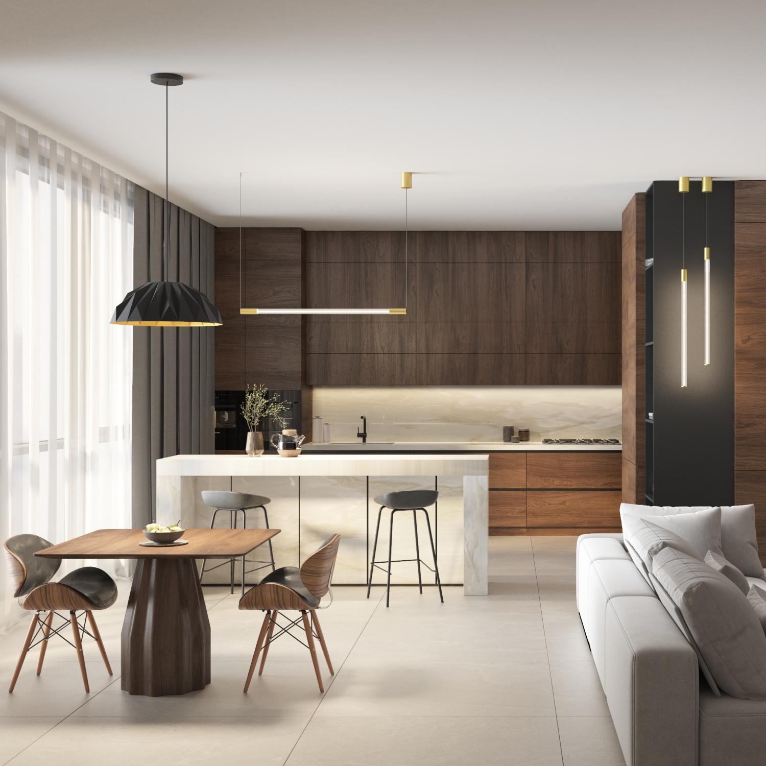 Люстры-полусферы с выразительным геометрическим рельефом создают неповторимую игру света и тени. Рельефный абажур с внутренним золотистым покрытием создаёт эффектный световой акцент, добавляя интерьеру тепла и динамики. Доступны два цветовых решения для идеального сочетания с любым интерьером.