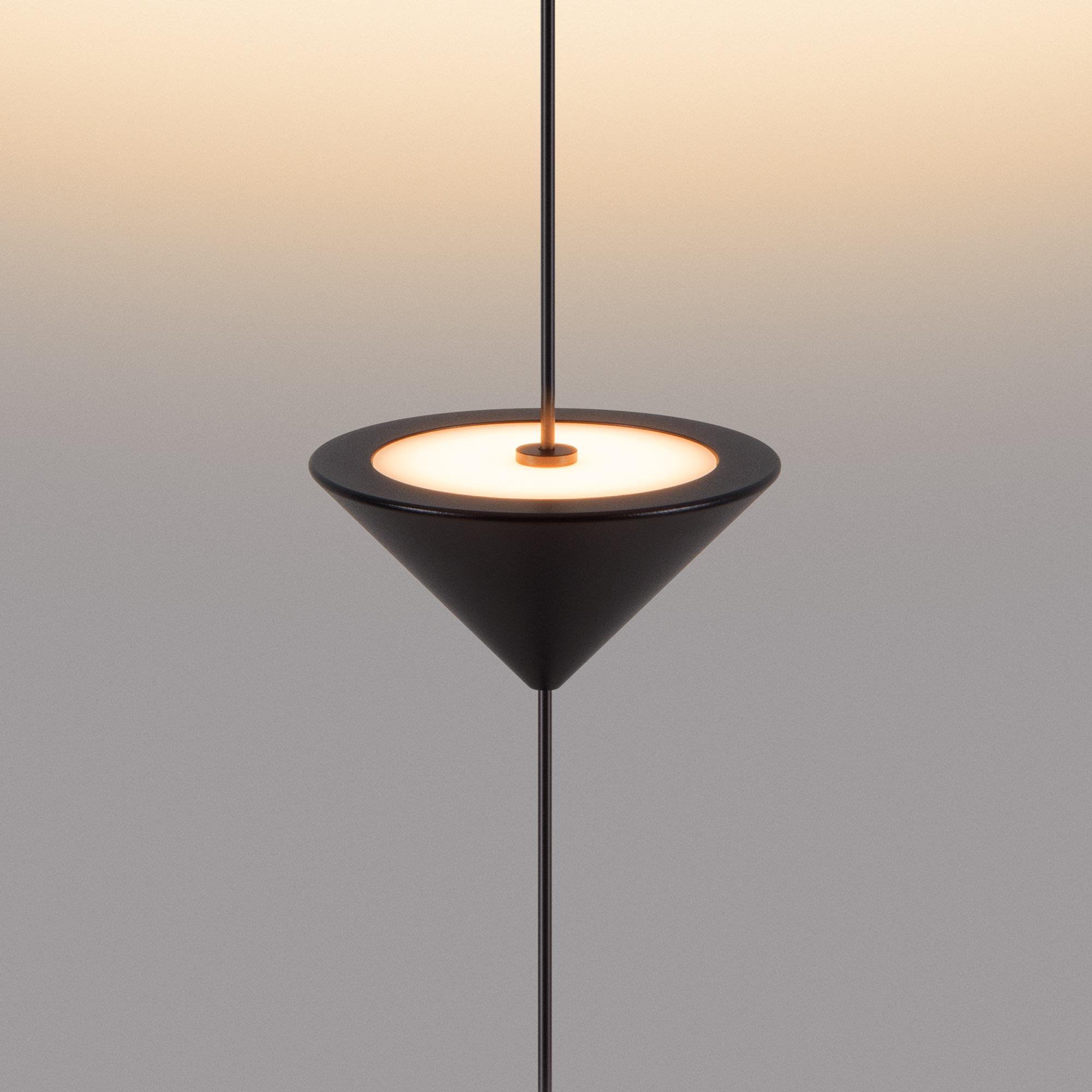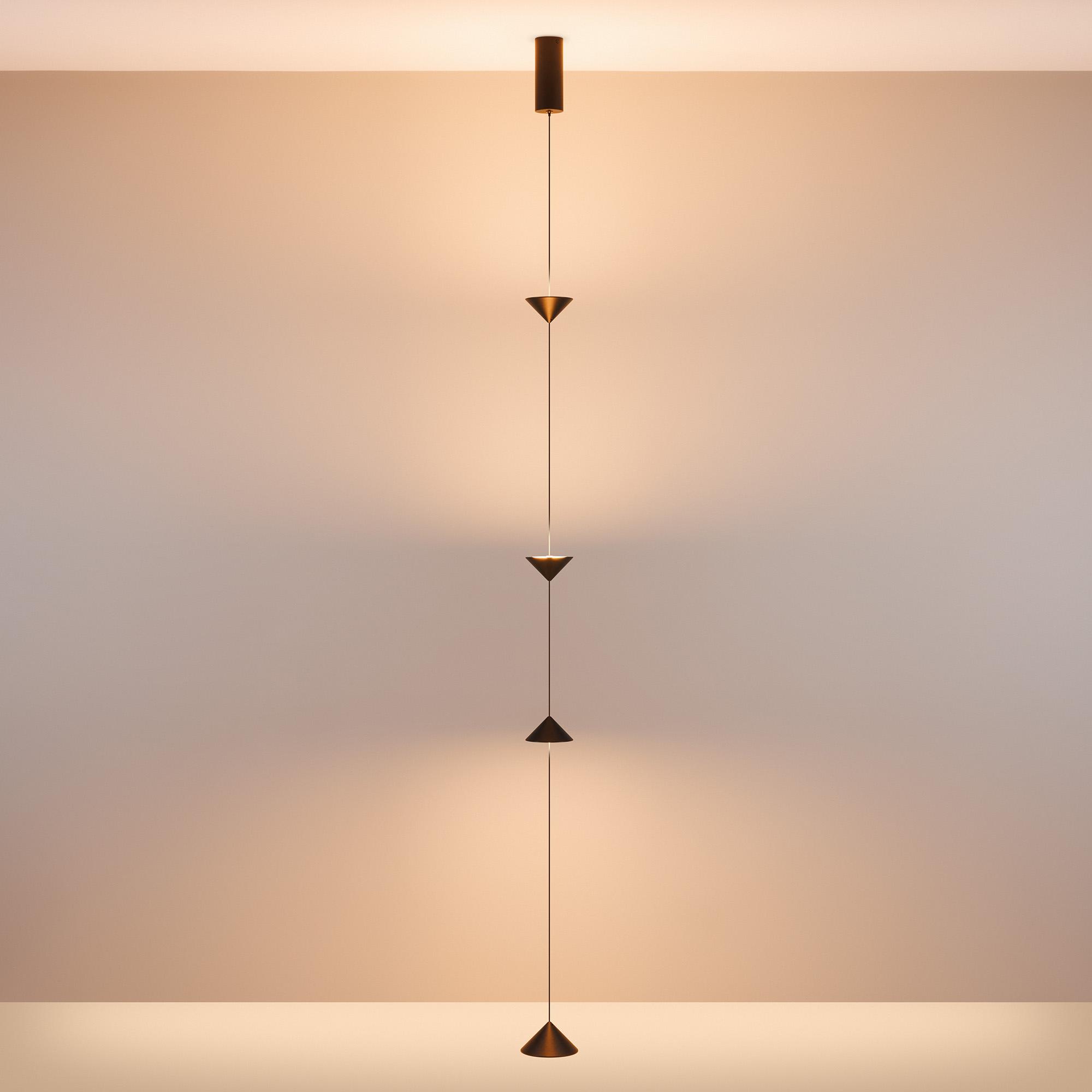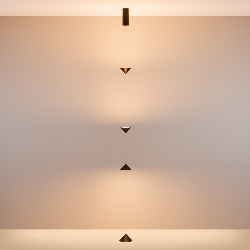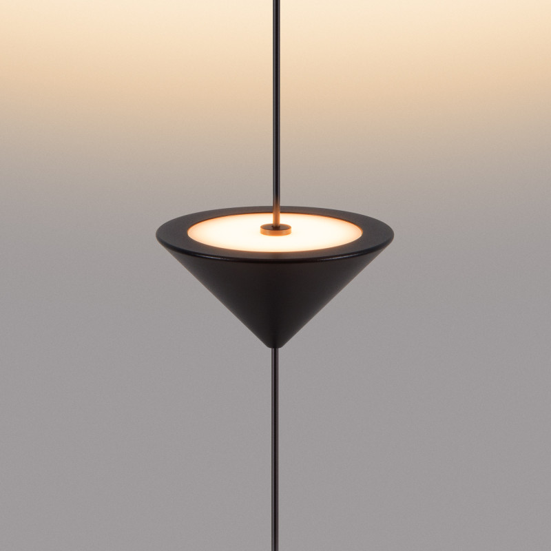 Декоративный накладной подвесной светильник. Мощность 12 Вт, св. поток 370 лм, 28 лм/Вт, теплый 2700 K, CRI>90, угол 110°, напряжение питания 230 В. Черный фигурный корпус из алюминия, экран PC, степень защиты IP20. Размер светоизлучающих модулей: Ø 100x55 мм; размер основания: Ø120*60 мм. Максимальная длина подвесной линии: 3800 мм (регулируется). Монтаж накладной, потолочная чаша: Ø60х150 мм. Драйвер 24-42 В, 300мА, пульсация<0,3. Совместим со встраиваемыми чашами 046018, 046020 (приобретаются отдельно). Декоративный подвесной светильник мощностью 12 Вт с накладным креплением к потолку для подсветки стен. Отлично будет смотреться в качестве стильного элемента интерьера, а также для зонирования помещения. Индекс цветопередачи CRI>90, тёплый белый цвет свечения (2700 К) и световой поток 370 лм создают уютную атмосферу и качественное декоративное освещение. Длина верхнего и нижнего участка подвесной линии регулируется от 0-1200 мм. Пульсация менее 0,3% создает равномерное свечение без мерцаний. Степень защиты корпуса на уровне IP 20 позволяет применять светильник внутри помещений, где отсутствует контакт с водой.