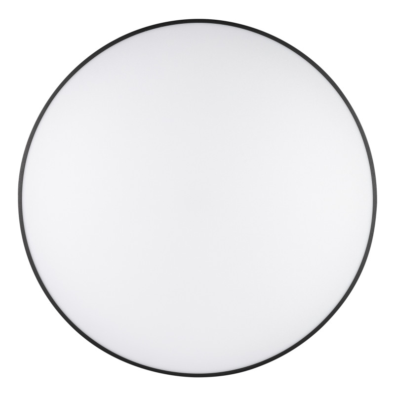 Накладной светильник. Мощность 60 Вт, св. поток 5700 лм, 90-100 лм/Вт, теплый 3000 K, CRI>90, угол 120°, напряжение питания 230 В. Черный круглый корпус из алюминия, экран PC, степень защиты IP40. Размер: диаметр 600 мм, высота 64 мм. Монтаж накладной. Драйвер 27-40 В, 1500 мА, пульсация <5%.