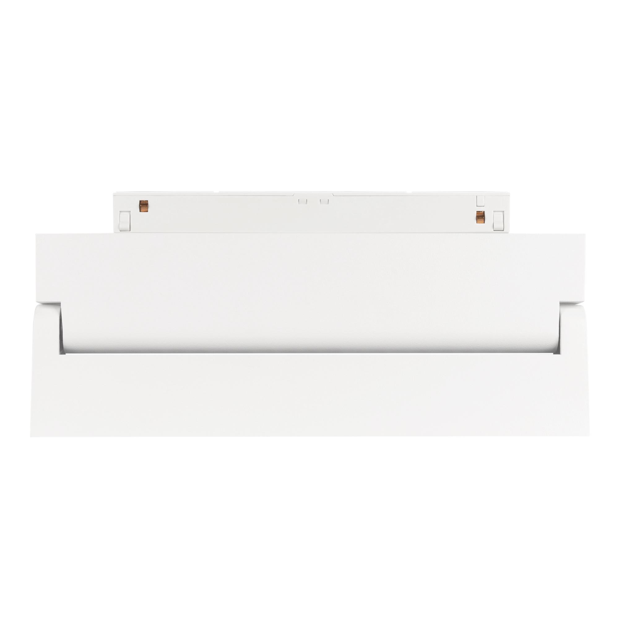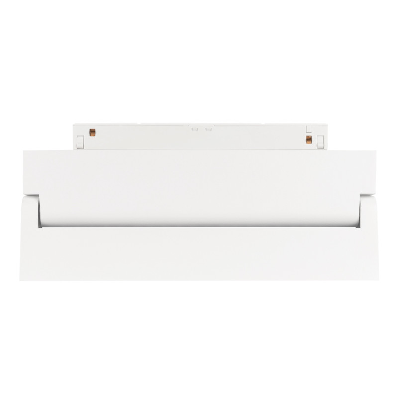 Светильник для магнитных треков MAG-ORIENT шириной 26 мм. Мощность 12 Вт, св. поток 520 лм, 43 лм/Вт, теплый 3000 K, CRI>90, угол 30°, напряжение питания 48 В. Белый прямоугольный корпус из металл, экран поликарбонат, степень защиты IP20. Размер: длина 231 мм, ширина 23 мм, высота 107 мм. Монтаж на трек MAG-ORIENT. Пульсация <1%.