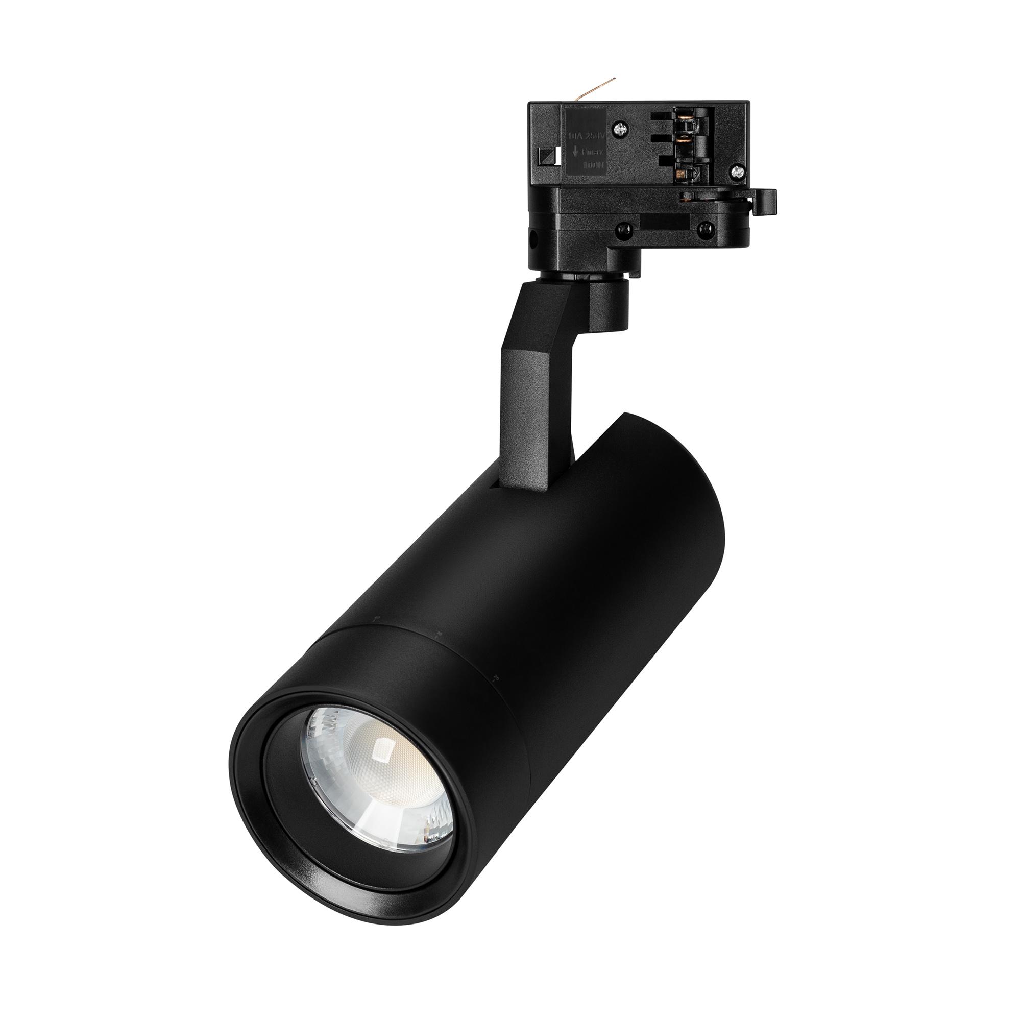 Светильник подвесной для треков/шин 4 провода, 20Вт. Цвет свечения меняется в диапазоне 3000К-6000К (возможность изменения цветовой температуры при помощи диммера DALI), световой поток1500 лм, 74 лм/Вт, регулируемый угол 20-60°, CRI>90. Корпус круглый, металл, цвет черный, IP20. Размеры DxL Ø80x181мм.. Входное напряжение AC220-240V, мощность 20Вт. Драйвер встроенный 12-54 В, 500 мА. Совместим только с шинопроводом серии С.