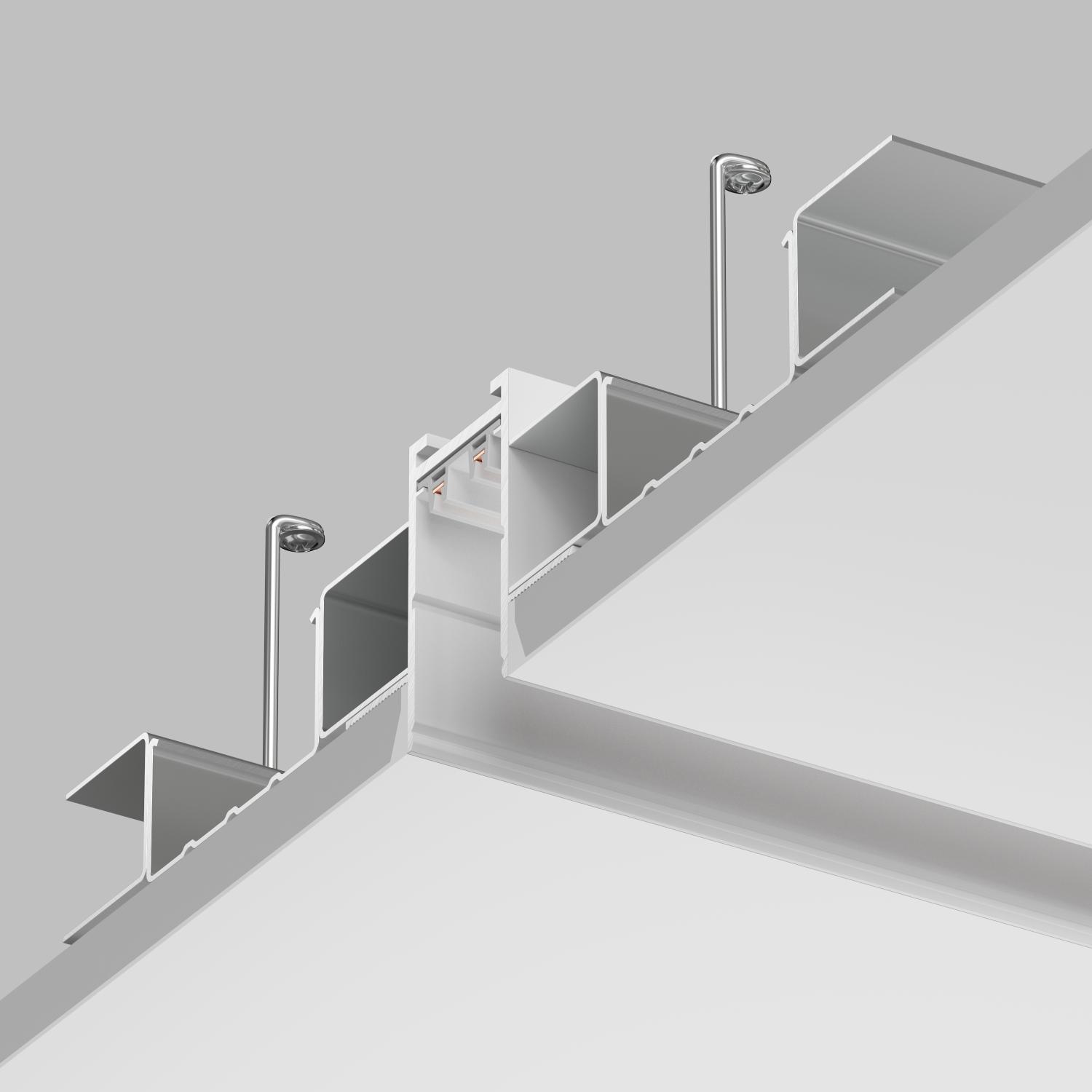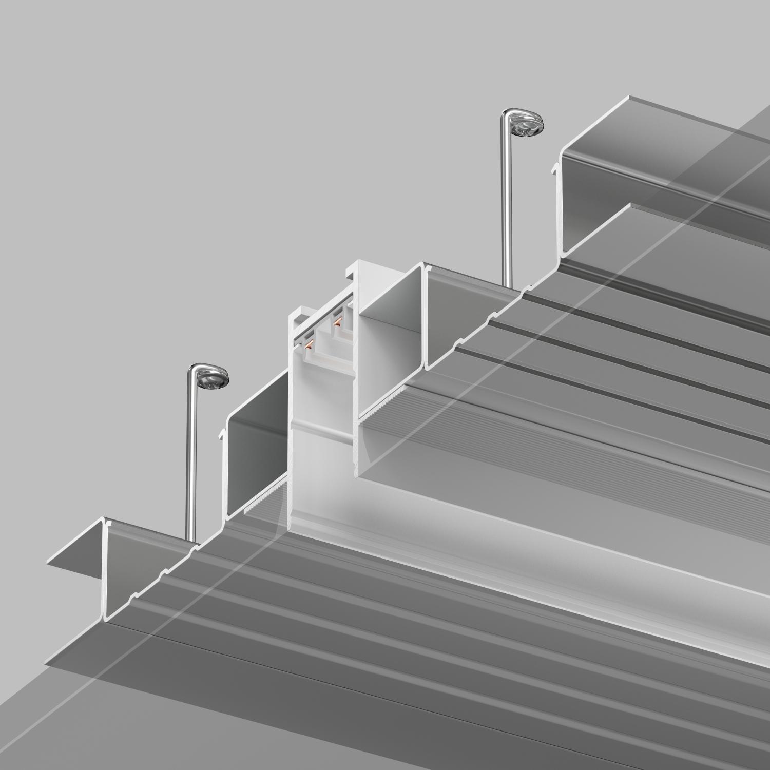 Трек системы SMART для встраиваемого монтажа в гипсокартон. Имеет специальные фланцы-упоры по всей площади, благодаря которым надежно фиксируется в материале подвесного потолка методом скрытого монтажа. Является лучшим решением для встраиваемого монтажа в гипсокартон. Торцевые заглушки идут в комплекте. Дополнительные аксессуары: подвод питания, соединительные элементы и декоративные экраны приобретаются отдельно. Шинопровод подключается к сетевому напряжению AC 220V. Драйвер и трансформатор не требуются. Для удобной и безопасной транспортировки рекомендуем использовать короб CB2020.