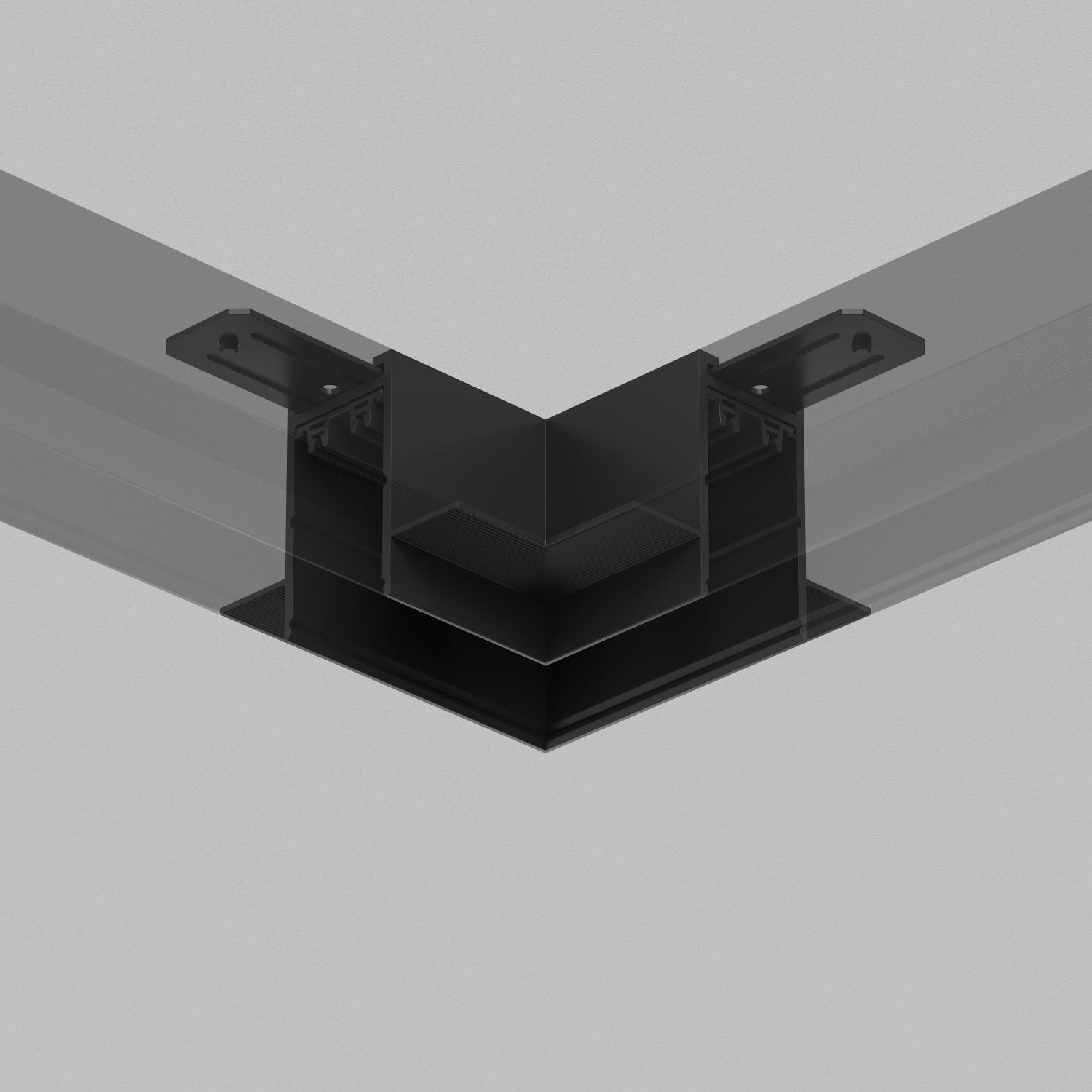 Угловой механический соединитель трека SMART, для встраиваемого монтажа в гипсокартон. Предназначен для создания прямого угла в одной плоскости. Гибкий электрический коннектор арт. TR2103 приобретается отдельно. Две металлические соединительные пластины, служащие для крепления трека и углового элемента входят в комплект поставки.