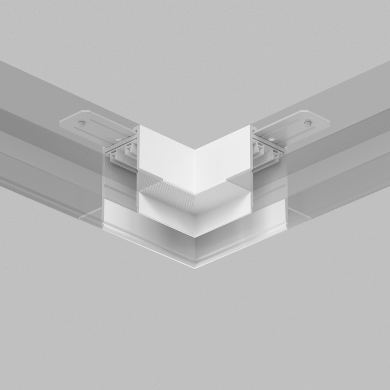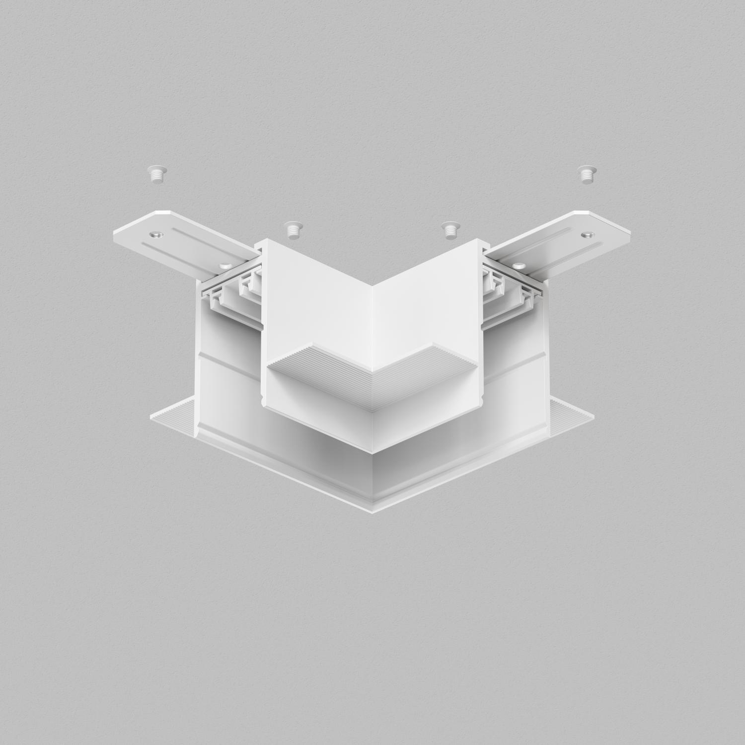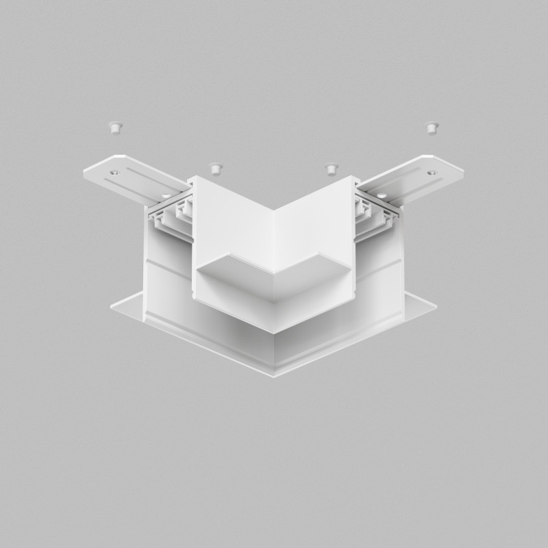 Специализированный трек, предназначенный для встраиваемого монтажа в потолки и стены из гипсокартона. Имеет фланцы-упоры по всей длине, благодаря которым надежно фиксируется в материале потолка либо стены Для создания угла 90°. Соединительные пластины входят в комплект. Гибкий электрический коннектор TR2103 приобретается отдельно.Угловой механический соединитель трека SMART, для встраиваемого монтажа в гипсокартон. Предназначен для создания прямого угла в одной плоскости. Гибкий электрический коннектор арт. TR2103 приобретается отдельно. Две металлические соединительные пластины, служащие для крепления трека и углового элемента входят в комплект поставки.