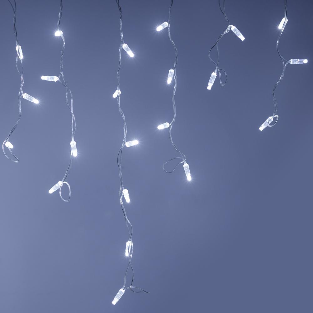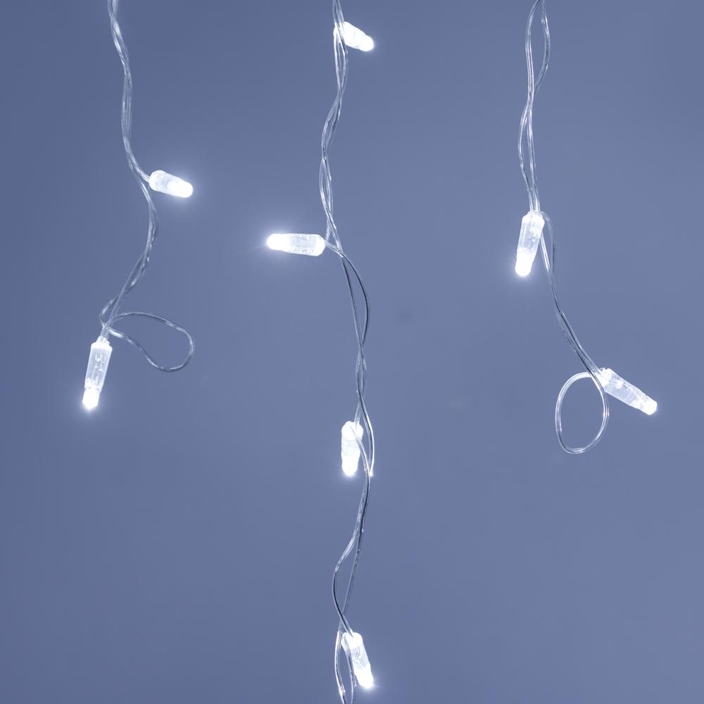 Светодиодная гирлянда \"Бахрома\" серии Classic. Размер 2400x600 (длина 2400 мм, максимальная высота 600 мм). Цвет светодиодов БЕЛЫЙ (6000К), постоянное свечение. Материал провода - прозрачный ПВХ. Диаметр провода 2.3 мм. 24 нити длиной от 200 до 600 мм, ниспадающих вниз. Количество светодиодов 88 шт. Размер светодиодов 5 мм с защитным колпачком и вогнутой внутрь линзой. Напряжение питания DC 230V, потребляемая мощность 6W, IP65. Для подключения одной гирлянды или нескольких гирлянд к сети необходимо приобрести провод питания с выпрямителем AC/DC. Универсальная светодиодная гирлянда \"БАХРОМА\" серии Classic, предназначенная для декорирования и создания праздничного настроения как внутри помещений, так и снаружи (при соблюдении условий монтажа). Благодаря наличию универсальных соединительных разъемов, имеется возможность нарастить длину до 50 метров без дополнительных аксессуаров. Подобная функциональность позволяет реализовать проект декоративного освещения практически любого масштаба.