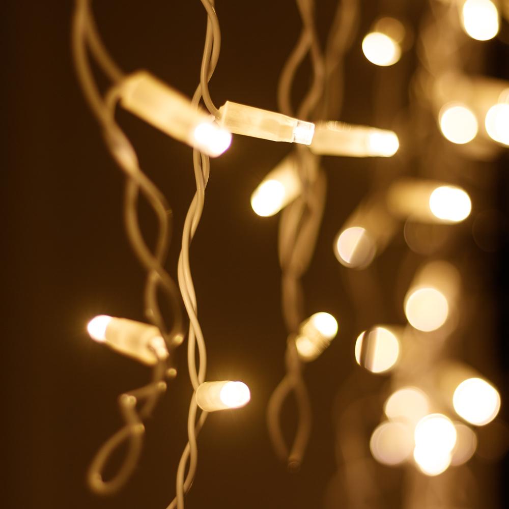 Светодиодная гирлянда \"Бахрома\" серии PRO. Размер 4000x600 (длина 4000 мм, максимальная высота 600 мм). Цвет светодиодов ТЁПЛЫЙ БЕЛЫЙ (3000К), постоянное свечение. Материал провода - белый РЕЗИНОВЫЙ (каучук). Диаметр провода 3.3 мм. 32 нити длиной от 200 до 600 мм, ниспадающих вниз. Количество светодиодов 128 шт. Размер светодиодов 7 мм с выпуклым защитным колпачком молочно-белого цвета. Напряжение питания DC 230V, потребляемая мощность 8W, IP65. Для подключения одной гирлянды или нескольких гирлянд к сети необходимо приобрести провод питания с выпрямителем AC/DC. Универсальная светодиодная гирлянда \"БАХРОМА\" серии PRO, предназначенная для реализации уличных проектов освещения с низкими температурами окружающей среды. Благодаря наличию универсальных соединительных разъемов, имеется возможность нарастить длину до 50 метров без дополнительных аксессуаров. Подобная функциональность позволяет реализовать проект декоративного освещения практически любого масштаба.