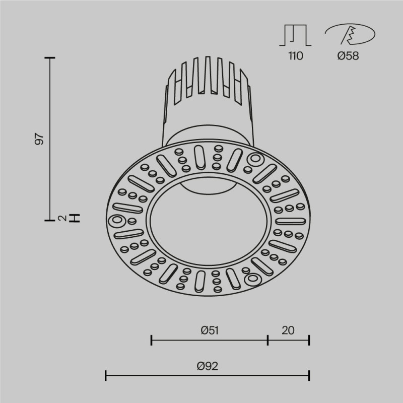 - монтажное отверстие (диаметр)58мм