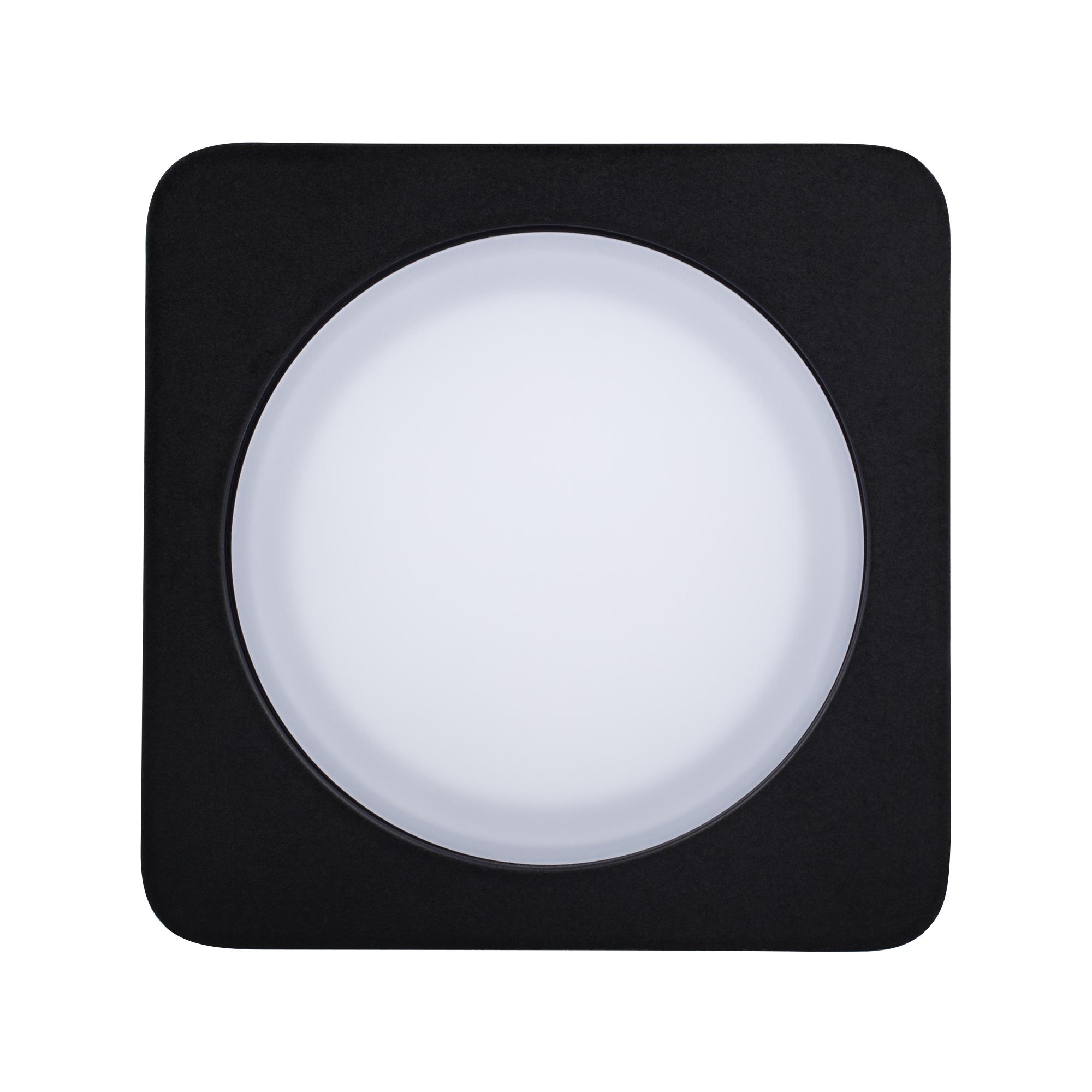 Квадратный светильник с контурным свечением. Корпус IP44 черный + вставка поликарбонат PC. Цвет ТЕПЛЫЙ БЕЛЫЙ 3000К, св.поток 325 лм, угол 120°+180°. Питание 110-240VAC (драйвер в к-те 300mA 11-25V), мощность 5Вт. Размеры 80х80х40 мм, установка в отв.65х65 мм, высота мин.40 мм.